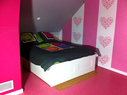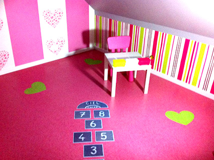Revêtement de sol avec incrustation coeur et stickers marelle